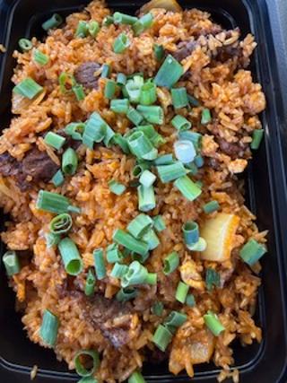 Yang Chow Fried Rice, with beef, chicken, shrimp, egg, and vegetables. I just love the Chinese sausage in this delectable fried rice.