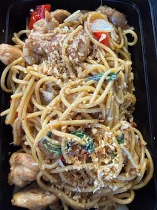 General Tso’s Chicken. The chicken is breaded with a wonderful smoky brown sauce, it hit the spot.