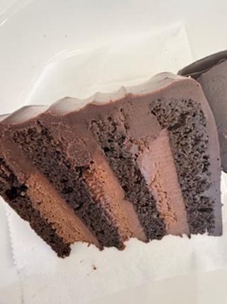 The New Beverly Cake – The Beverly – A customer favorite! Yellow cake layered with Cordillera chocolate mousse, vanilla cream and rich ganache wrapped in Divine chocolate glaze and decorated with cocoa nibs, buttercream flowers, with an edible gold leaf.
